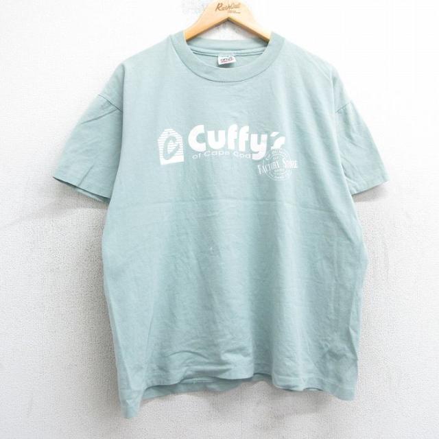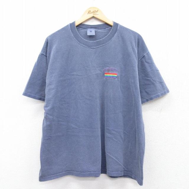 【商品名】 XL★古着 半袖 ビンテージ Tシャツ メンズ 90年代 90s グースロックスビーチ コットン クルーネック USA製 薄紺系