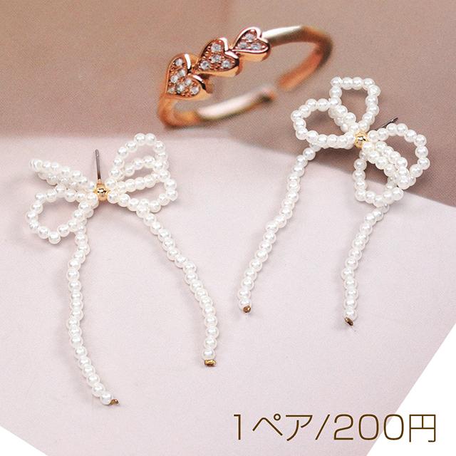 デザインピアス パールピアス リボンピアス タッセル 可愛い 約3.5×6mm(1ピア)