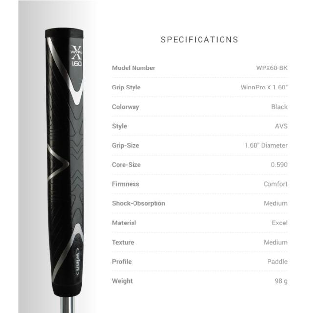 winn ウィン PRO X 1.60 WPX60-BK / WPX60-DG スーパージャンボ パターグリップ【メール便に変更できます】