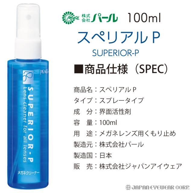 メガネ レンズ クリーナー 眼鏡 レンズ ケア メガネレンズクリーナー スぺリアルP SUPERIOR-P 100ml 業務用 パール PEARL 清潔 クリーン 汚れ クリーニング 帯電防止 レンズ 汚れ