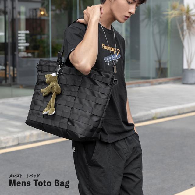 トートバッグ メンズ 撥水 ナイロン カジュアル 横型 大容量 2way A4 大学生 通勤 通学 学生 ブラック 黒 バッグ 斜め掛け 手提げ ファスナー 縦長 カバン 布 高校生 肩掛け かっこいい オシャレ 小さめ 男性 送料無料