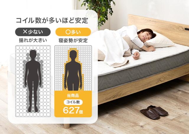 | 材質 | 主材:ポケットコイル(コイル数:627) 張地:ポリエステル |