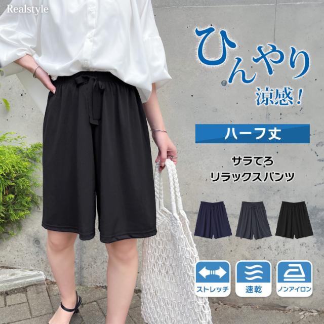 新作 ハーフパンツ 涼感 レディース 夏 涼しい ひんやり 接触冷感 薄手 速乾 ワイドパンツ ウエストゴム ゆったり ボトムス キュロット サラてろ