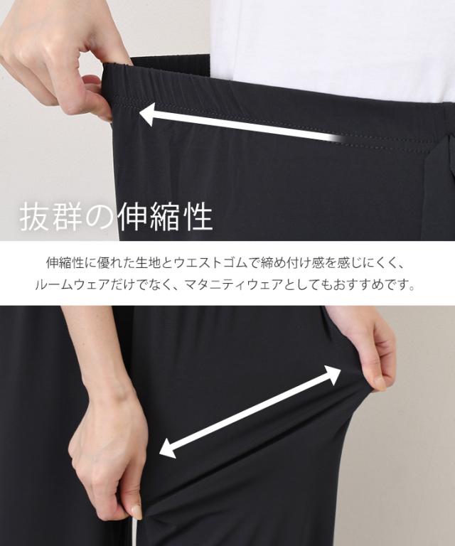 伸縮性に優れた生地とウエストゴムで締め付け感を感じにくく、