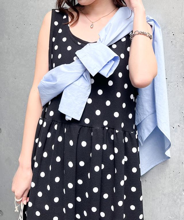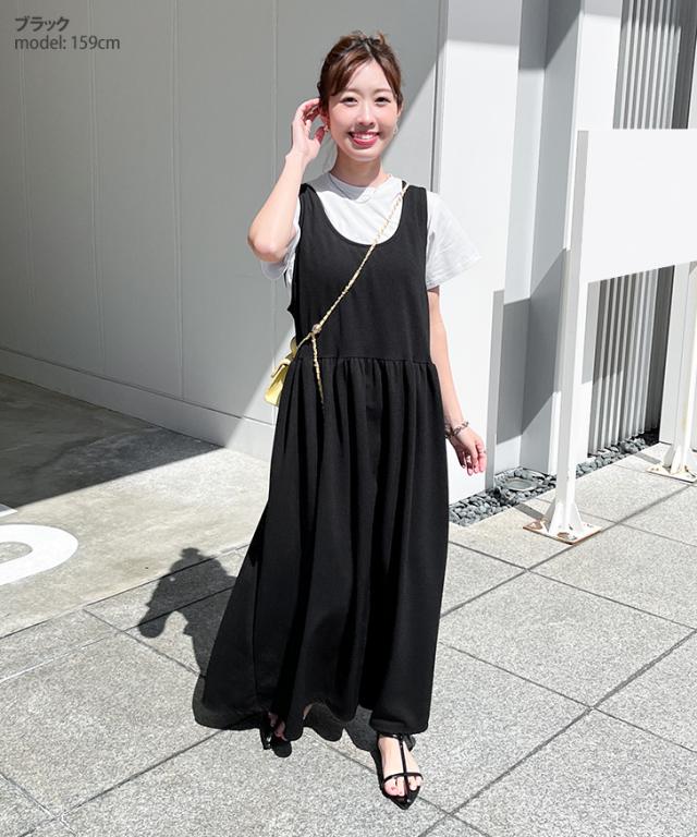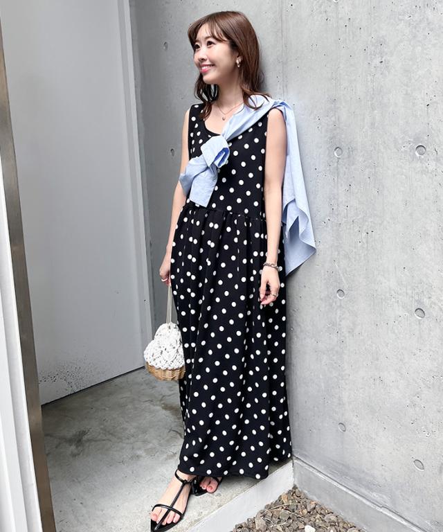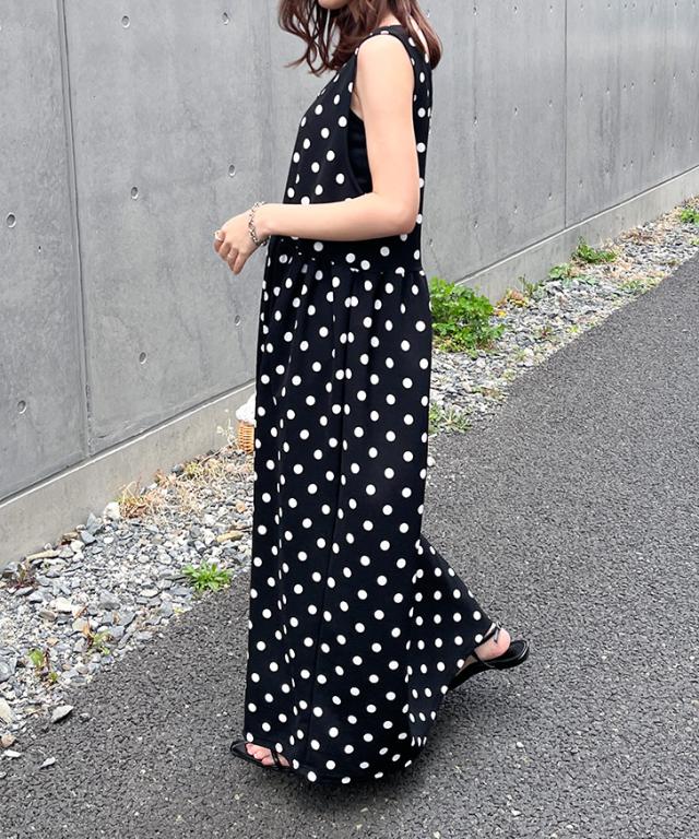 新作 ワンピース レディース ロング マキシ きれいめ 春 夏 ノースリーブ フレア ゆったり 大きいサイズ ドット 無地 エンボス しわにならない