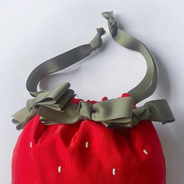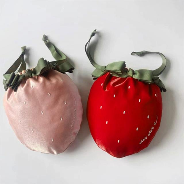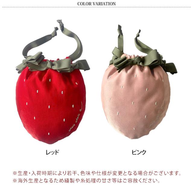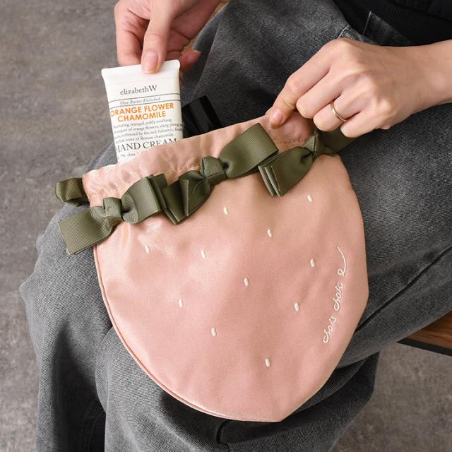 新作 ポーチ 小物入れ 巾着袋 レディース バッグ キッズ 子供 女の子 薄型 いちご 苺 リボン おしゃれ サテン メイク 化粧品 サニタリー