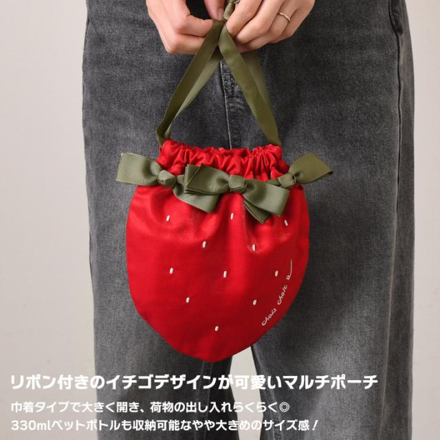 リボン付きのイチゴデザインが可愛いマルチポーチ