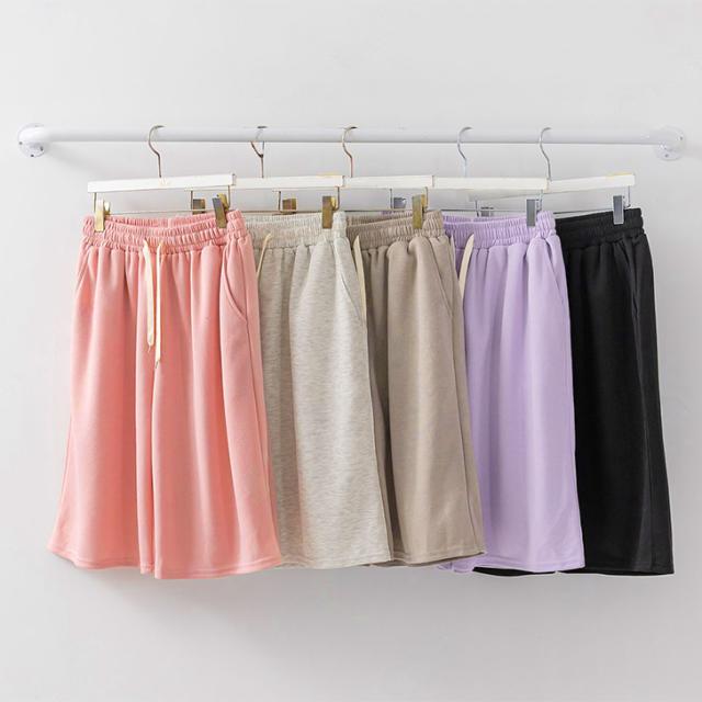 新作 ハーフパンツ レディース 膝丈 ワイド スウェット スエット 半ズボン 短パン 部屋着 ルームウェア スポーツ 白 黒 ポケット ウエストゴム