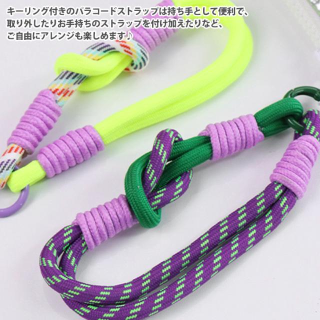 キーリング付きのパラコードストラップは持ち手として便利で、