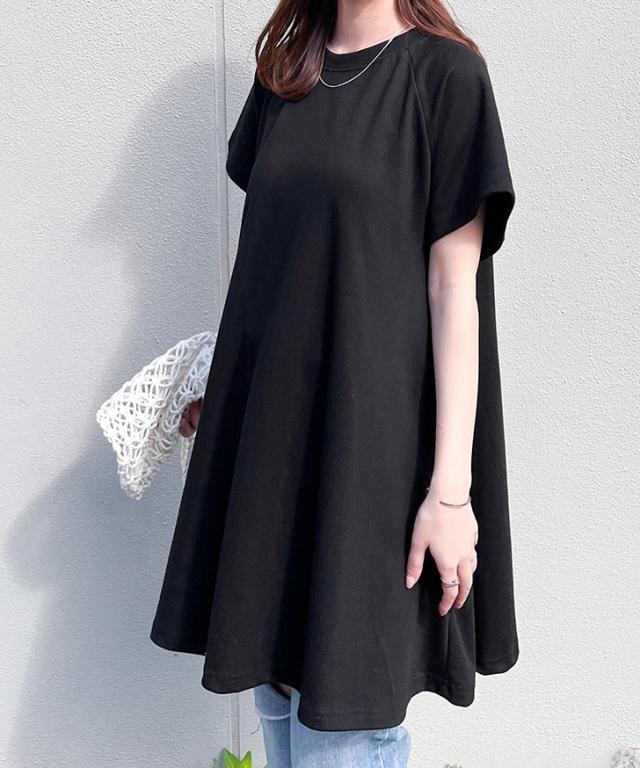 新作 チュニック ワンピース レディース 春 夏 秋 きれいめ 半袖 膝丈 フレア Aライン おしゃれ スウェット スエット ゆったり 体型カバー
