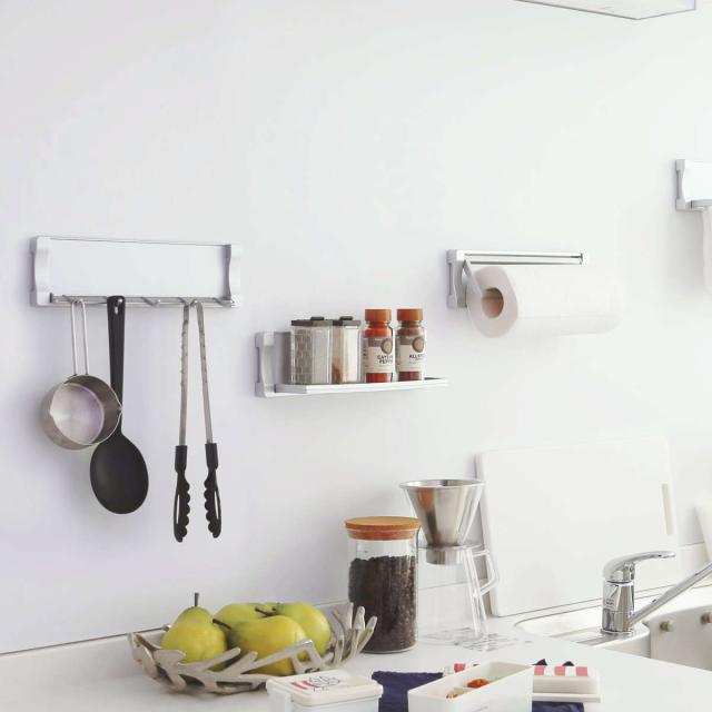 キッチンツールラック マグネット マグシャーレ レードルフック マグネット収納 シルバー ( キッチン収納 壁面収納 キッチンツール収納 フック 磁石 壁 玄関ドア内側 掛ける キッチン用品 小物 洗面所 浴室 壁掛け )