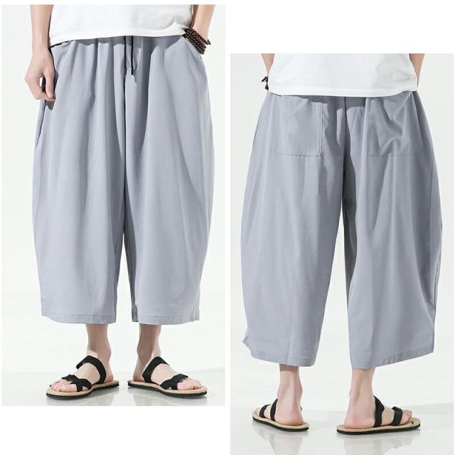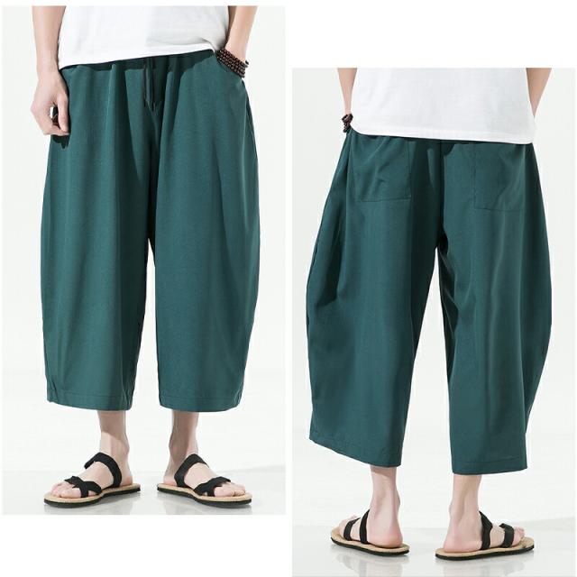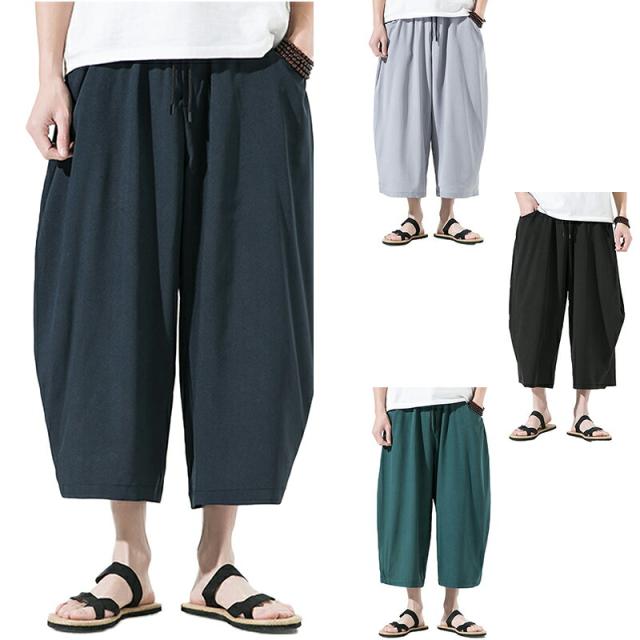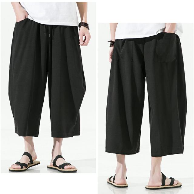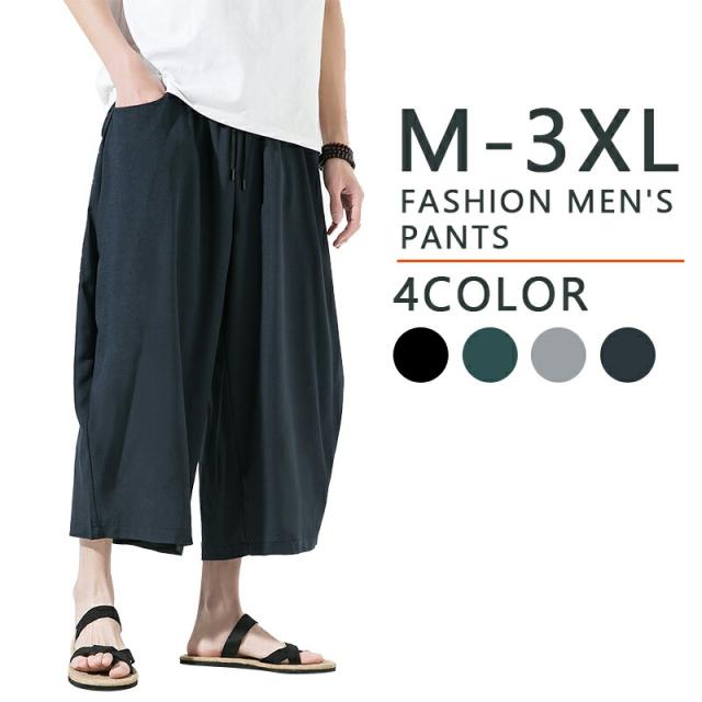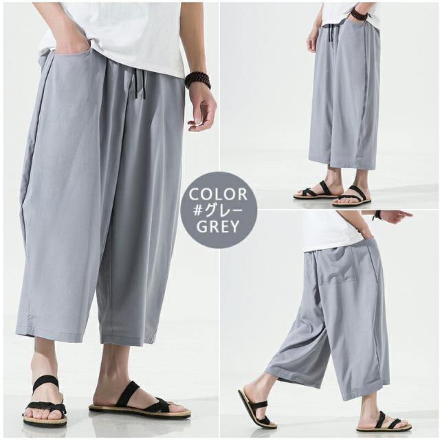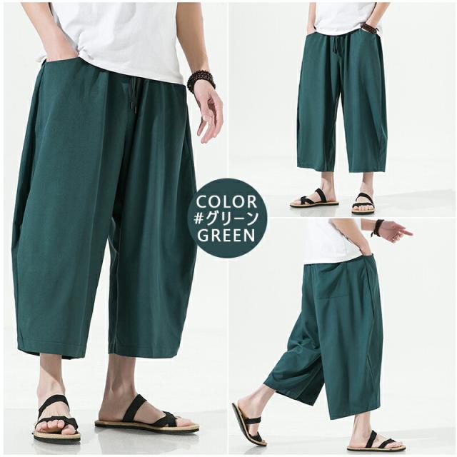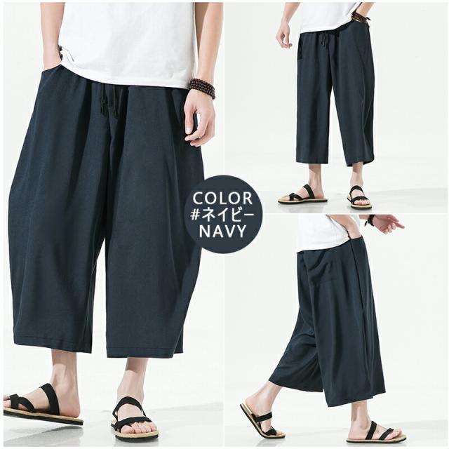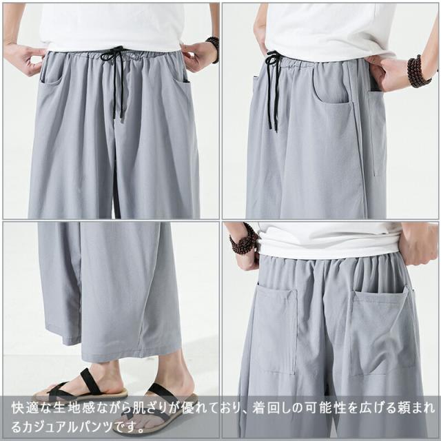 【4カラー・5サイズ】サルエルパンツ メンズ 夏 ワイド リネン 7分丈 パンツ リンネル ワイドパンツ ゆったり 調整紐 無地 リラックス 袴パンツ 大きいサイズ オシャレ