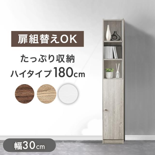 扉組替OK 本棚 大容量 ハイタイプ 180cm 幅30 扉付き 可動棚 木製 オープン 縦長 可動 収納 棚 スリム 書棚 扉付き本棚 シェルフ 本 扉 漫画 マンガ コミック カラーボックス 6段 ラック A4 おしゃれ 北欧