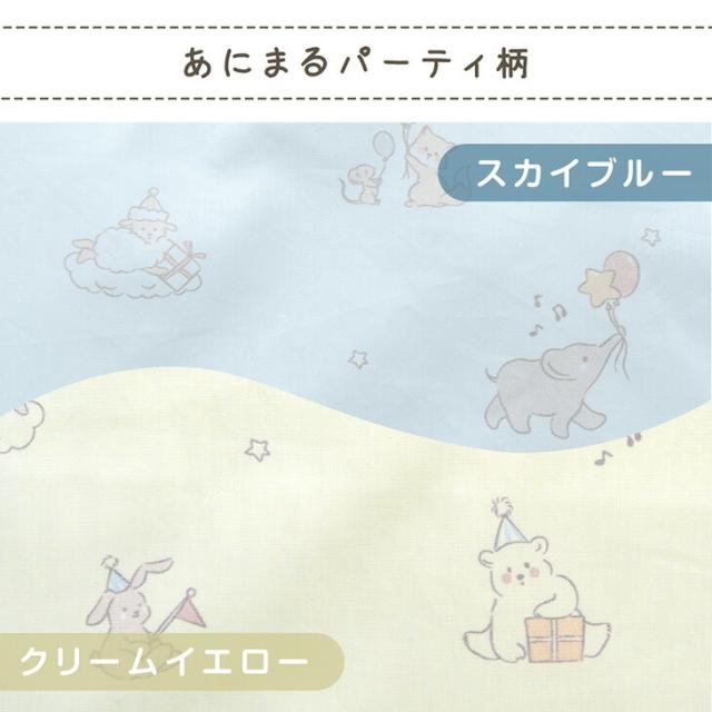 【あにまるパーティ柄】スカイブルー、クリームイエロー