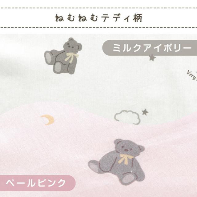 【ねむねむテディ柄】ペールピンク、ミルクアイボリー