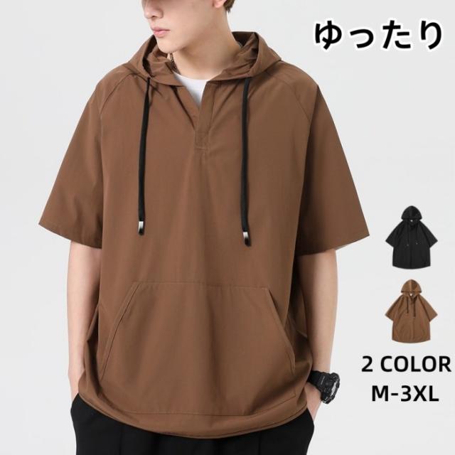 パーカー メンズ 大きいサイズ 半袖 トップス tシャツ トレーナー フード付き カジュアル ジャージ スウェット 夏新作