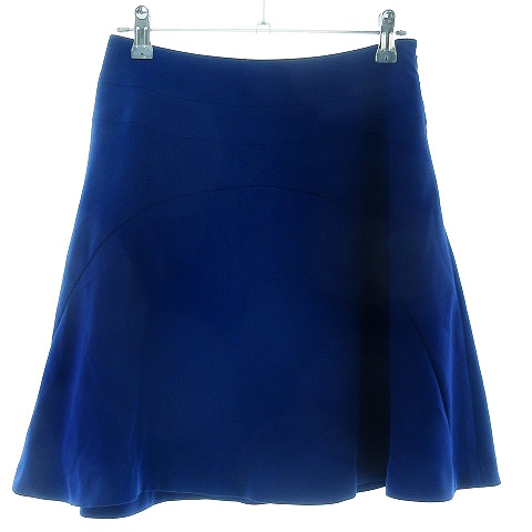 【中古】B&Y ユナイテッドアローズ スカート フレア ひざ丈 サイドファスナー 薄手 無地 S 青 レディース