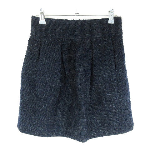 【中古】マカフィー トゥモローランド スカート フレア ミニ サイドファスナー タック 薄手 総柄 36 紺 黒 レディース