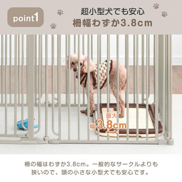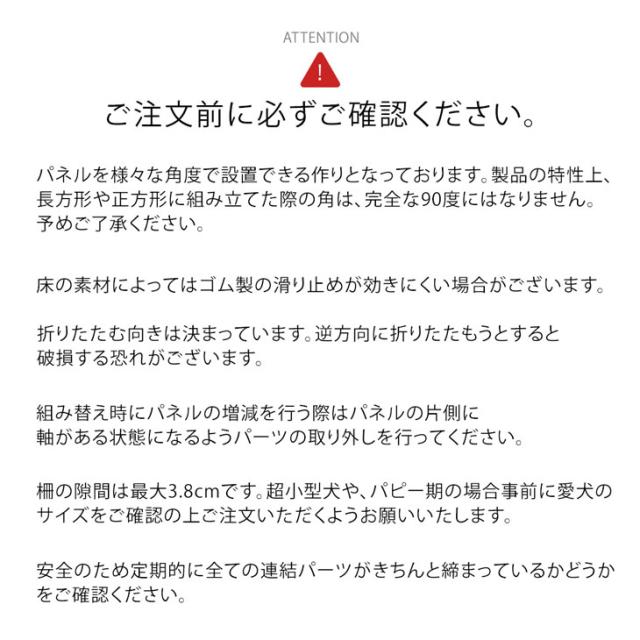 ※柵の隙間は最大3.8cmです。超小型犬や、パピー期の場合事前に愛犬のサイズをご確認の上ご注文いただくようお願いいたします。