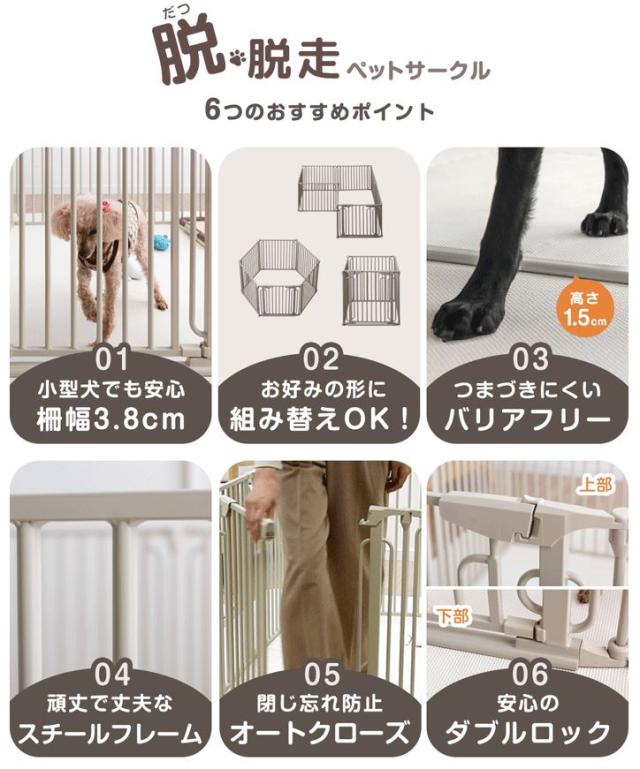 小型犬も脱走しにくい ペットサークル 6枚セット バリアフリー スチール コンパクト 折りたたみ ドア付き 組み替え 拡張 ドッグサークル ドッグケージ サークル ペットケージ ペットゲージ 犬用 犬 ケージ 小型犬 室内