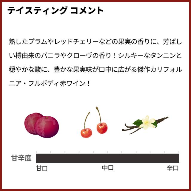 ![]() ■ぶどう品種:カベルネ・ソーヴィニヨン100% ■熟成:オーク樽熟成 カリフォルニア辛口フルボディ赤ワイン愛好家大注目! 熟したプラムやレッドチェリーなどの果実の香りに、芳ばしい樽由来のバニラやクローヴの香り!シルキーなタンニンと穏やかな酸に、豊かな果実味が口中に広がる傑作カリフォルニア・フルボディ赤ワイン! ドリームリーの魅力は、普段の毎日から特別な日まで、様々なシーンでお楽しみ頂けます! |