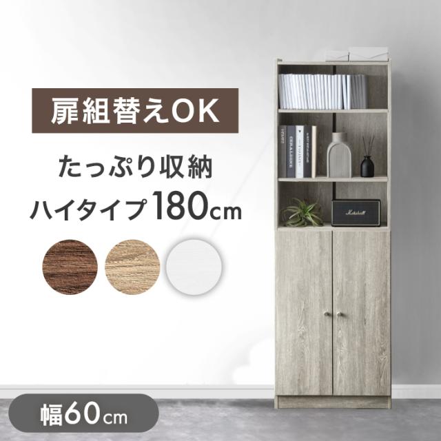扉組替OK 本棚 大容量 ハイタイプ 180cm 幅60 扉付き 可動棚 木製 オープン 縦長 可動 収納 棚 スリム 書棚 扉付き本棚 シェルフ 本 扉 漫画 マンガ コミック カラーボックス 6段 ラック A4 おしゃれ 北欧