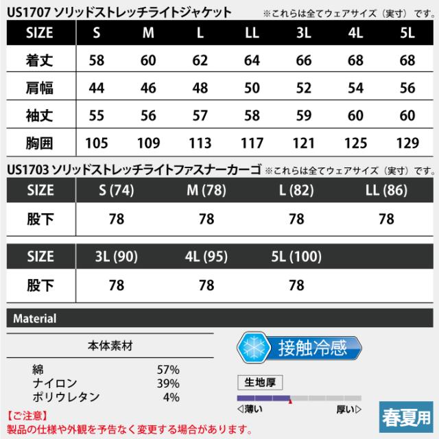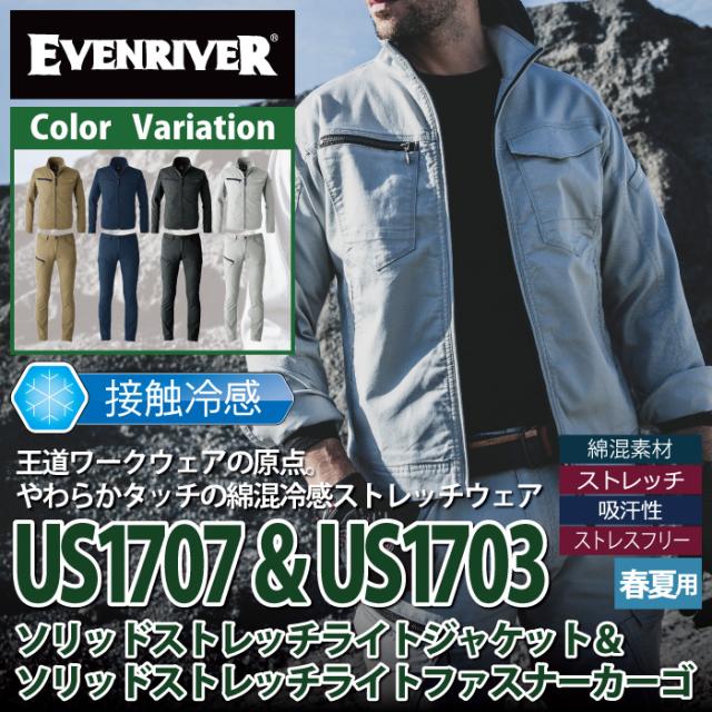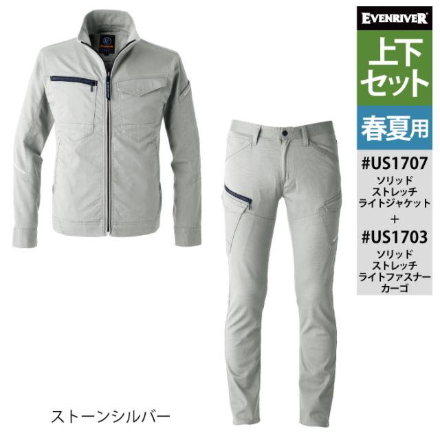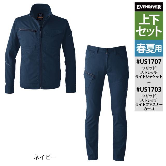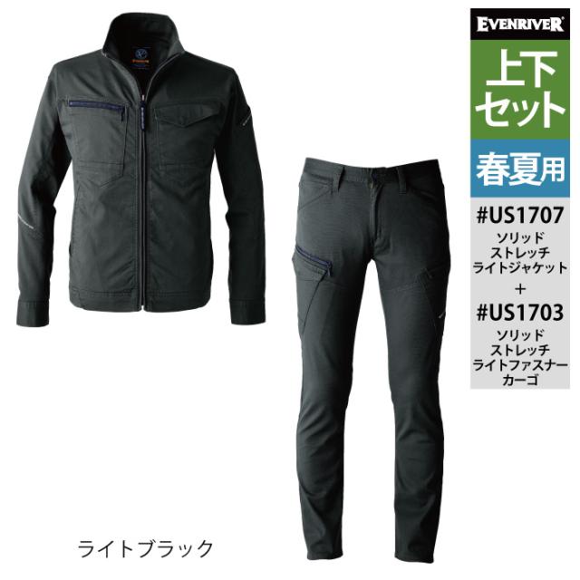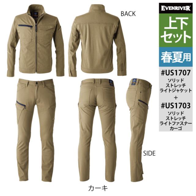 イーブンリバー EVENRIVER 作業服 上下セット US1707 ジャケットS-3L と US1703 カーゴパンツ S-3L 作業着 作業ズボン 春夏
