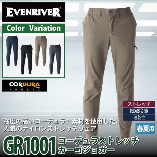 イーブンリバー EVENRIVER 作業服 作業ズボン 2025春夏新作 GR1001 コーデュラストッレッチカーゴジョガー S-4L 作業着 おしゃれ