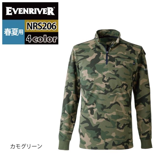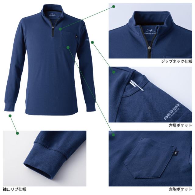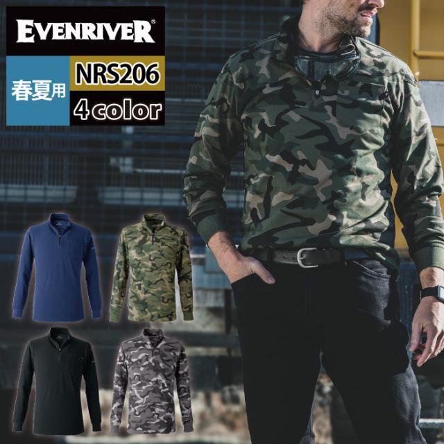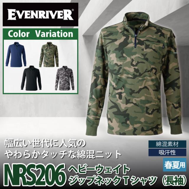 イーブンリバー EVENRIVER 作業服 インナー 2025春夏新作 NRS206 ヘビーウェイトジップネックロングTシャツ M-4L 作業着 おしゃれ