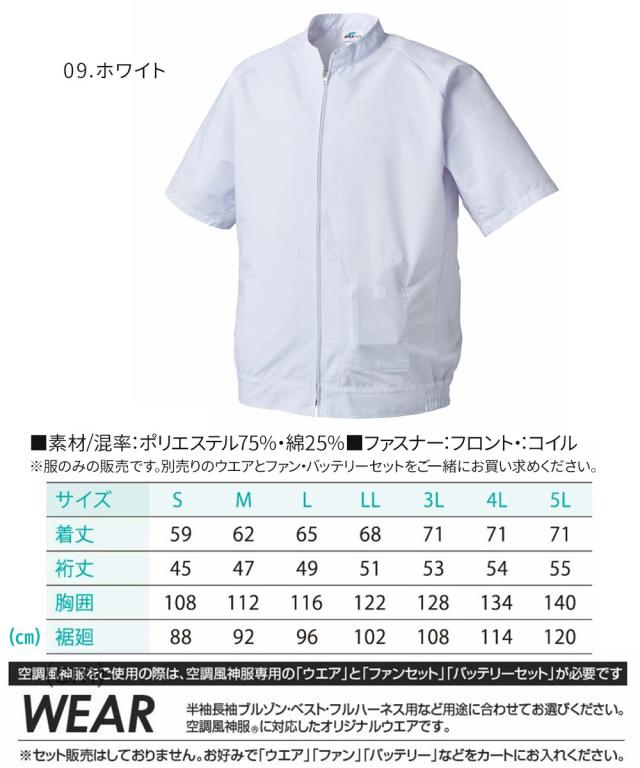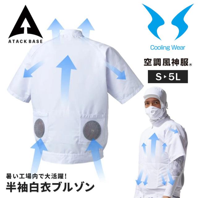 アタックベース 衛生白衣 半袖白衣ブルゾン 空調風神服 白衣 半袖 春 夏 ブルゾン ジャンパー 作業着 作業服 男女兼用 レディース メンズ 白 ホワイト 003 熱中症対策 速乾 制電 消臭 大きいサイズ 服のみ/ファン/バッテリー別売