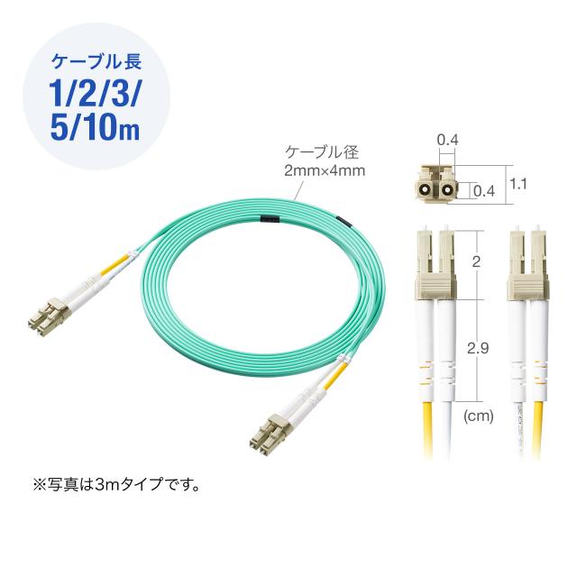 光ファイバケーブル OM3 10GBASE-SR/SW規格 10Gbps マルチモード LC×2-LC×2 メガネ型 2芯 50μm 3m[500-HOM3LCLC-03]