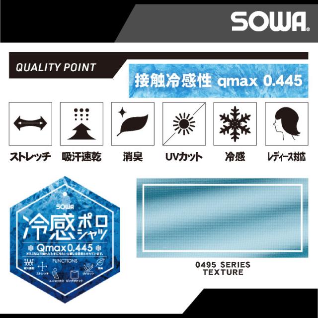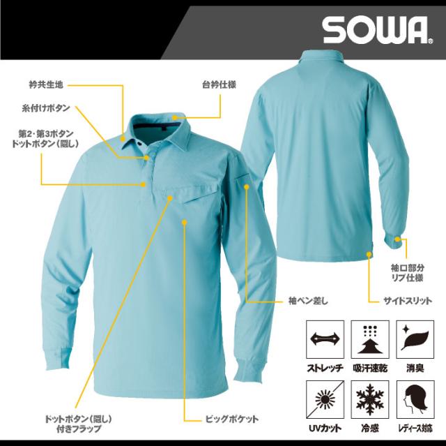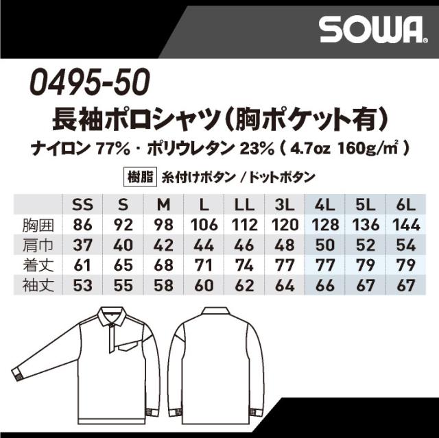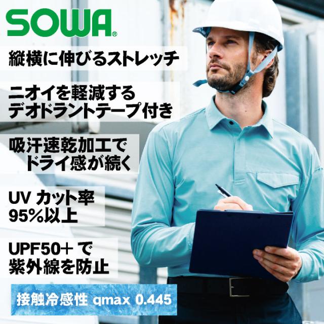 0495-50 SOWA 長袖ポロシャツ qmax0.445 春夏 秋冬 工事現場 建設業 農作業 ガーデニング アウトドア おすすめ 制服 人気 SS S M L LL 3L