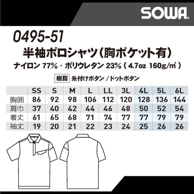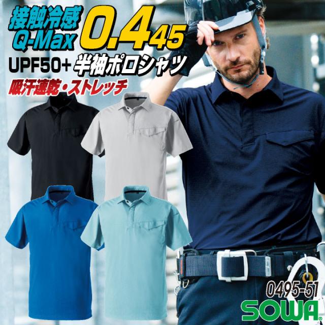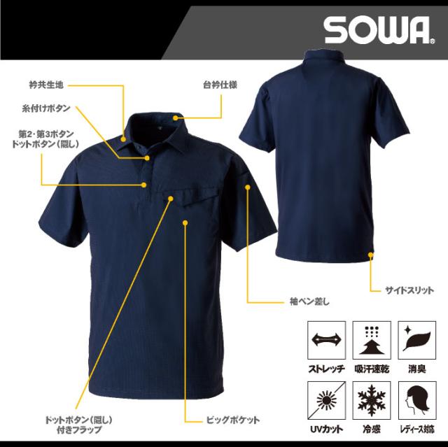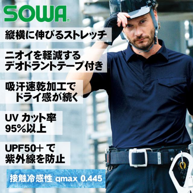0495-51 SOWA 半袖ポロシャツ 春夏 秋冬 工事現場 建設業 農作業 ガーデニング アウトドア おすすめ 制服 人気 SS S M L LL 3L