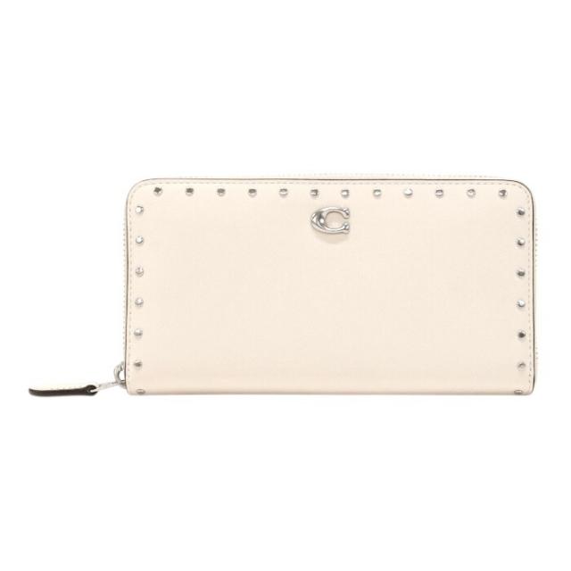 【ABランク】 コーチ COACH アコーディオン ジップ ウォレット リベット グラブタンレザー CU707 長財布 ラウンドファスナー ロングウォレット レディース チョーク (ホワイト) 正規品 中古 mbl23013