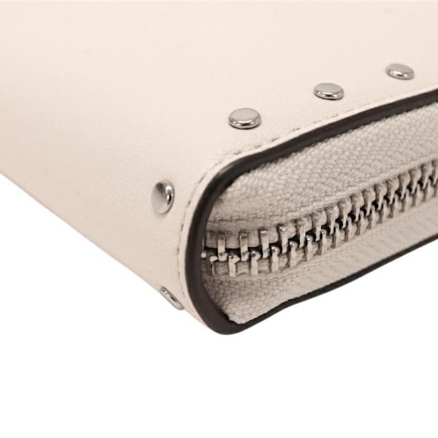 アコーディオン ジップ ウォレット リベット グラブタンレザー CU707 長財布 ラウンドファスナー ロングウォレット レディース チョーク (ホワイト)