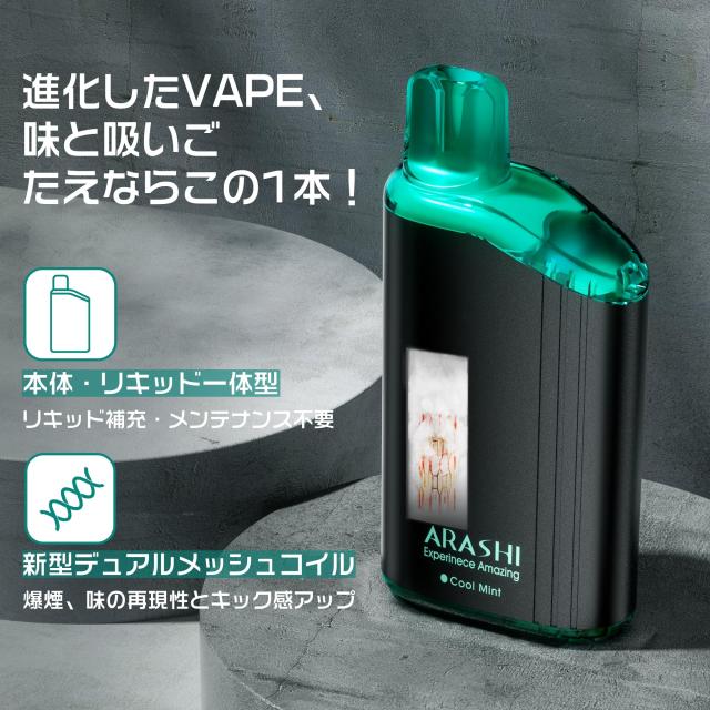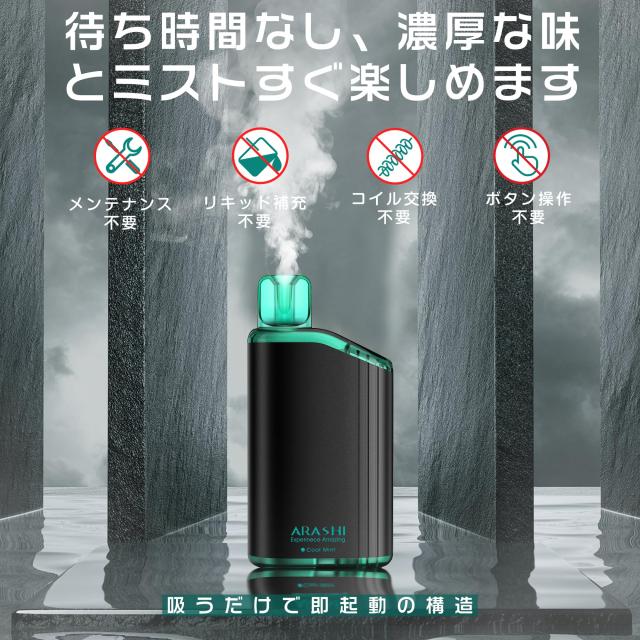 ARASHI進化した電子タバコの新品発売、リキッドの詰め替え、コイルの交換、ボタンを押しが全てなし!!16000PUFF/本(※吸い方法により個人差があります)