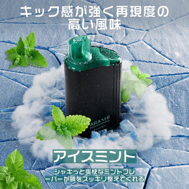 電子タバコ 使い捨て ベイプ メンソール 16,000回吸引可能 禁煙パイポ vape シーシャ 持ち運び 爆煙 水蒸気タバコ ニコチン0 タール0 禁煙グッズ ARASHI アイスミント