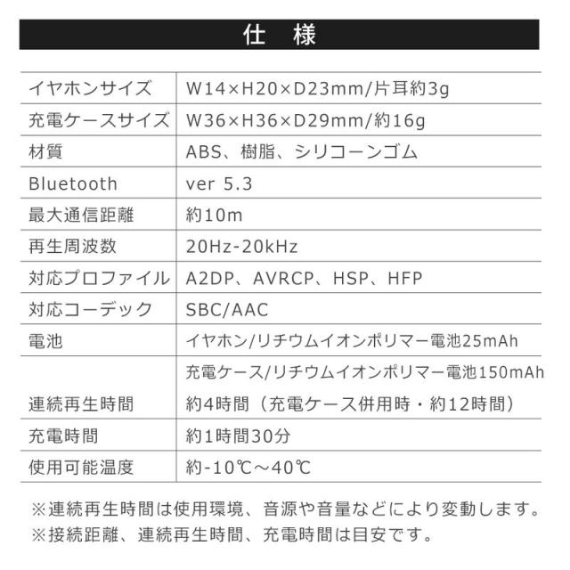 連続再生時間:約4時間(充電ケース併用時・約12時間)