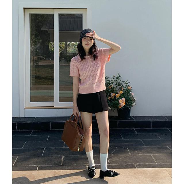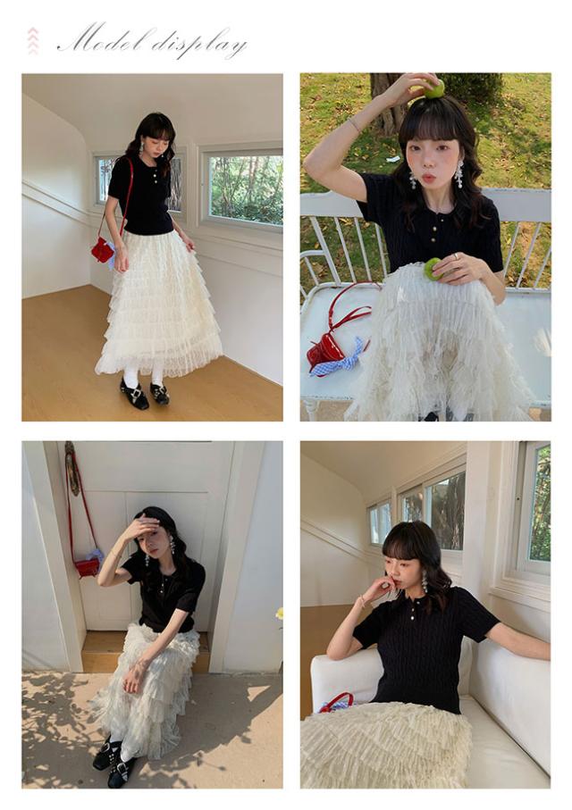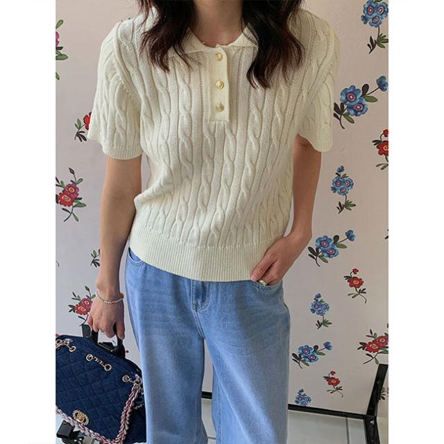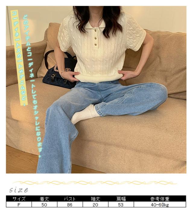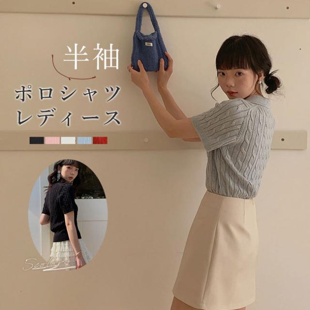 ポロ襟ニットTシャツ レディース 夏新作 韓国風 トップス