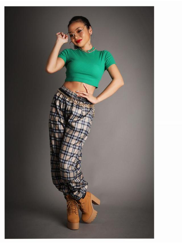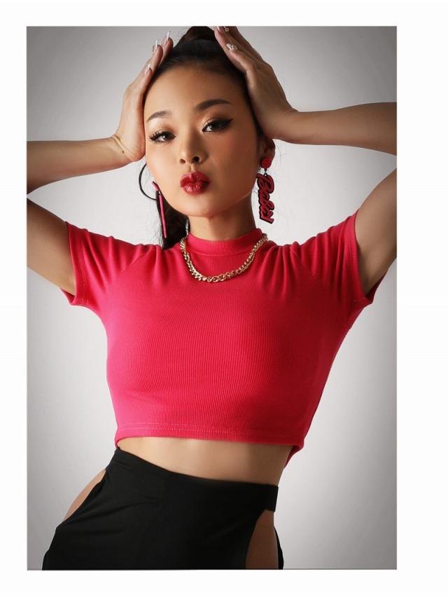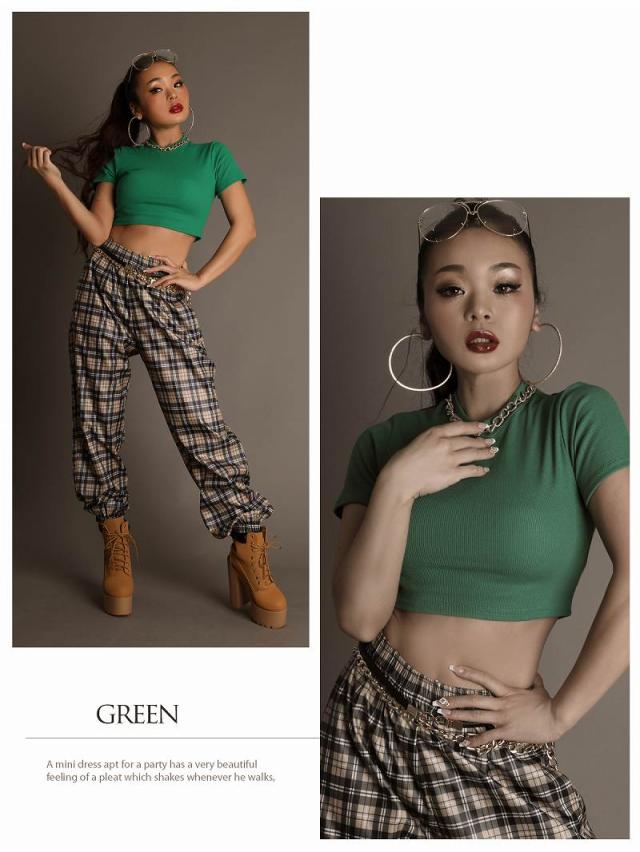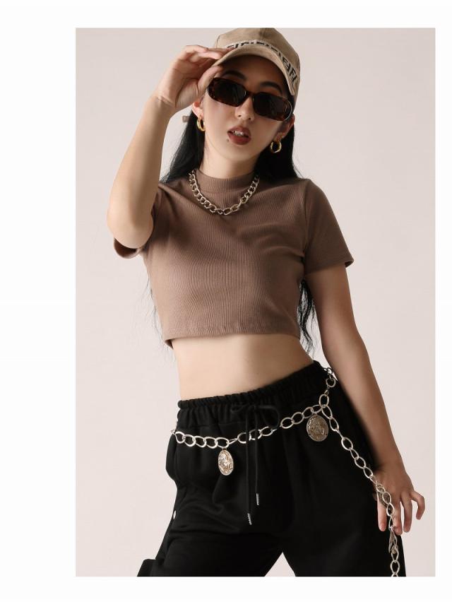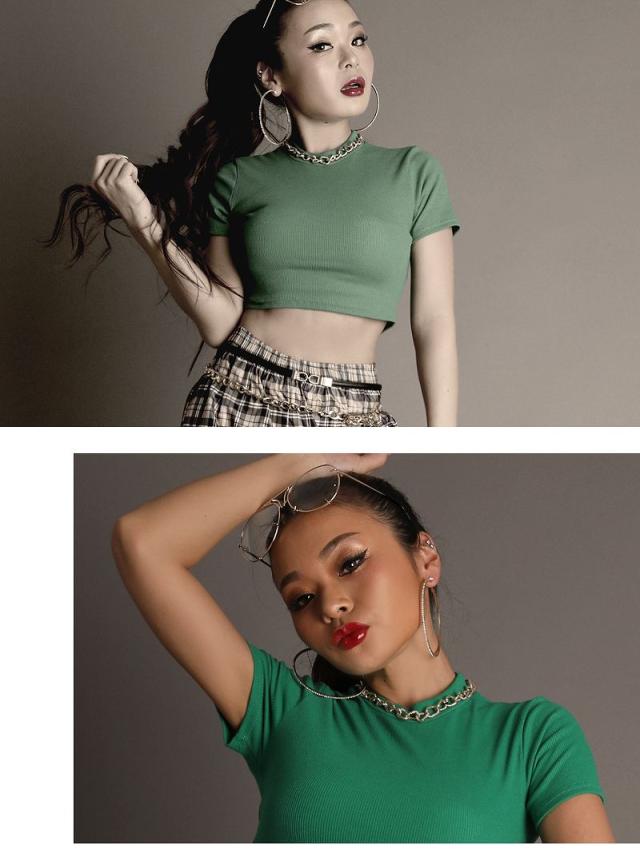 ☆今っぽKPOP風ミニ丈トップスはウエスト見せで細いくびれを強調できる!さらに腰位置が高く見えスタイルアップ効果も◎