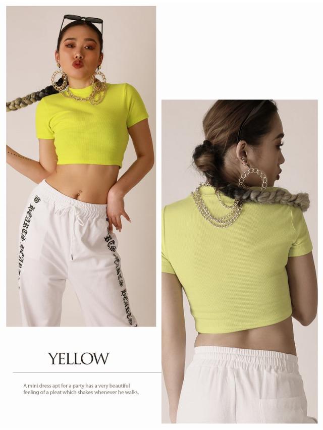 半袖Tシャツ Bbomb Tシャツ トップス ヘソ出し ネオンカラ-