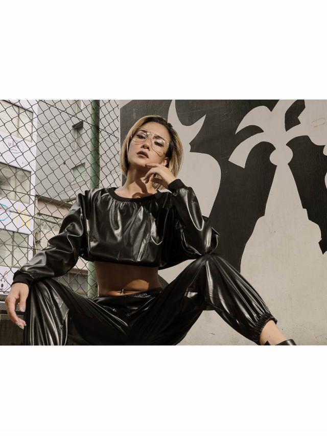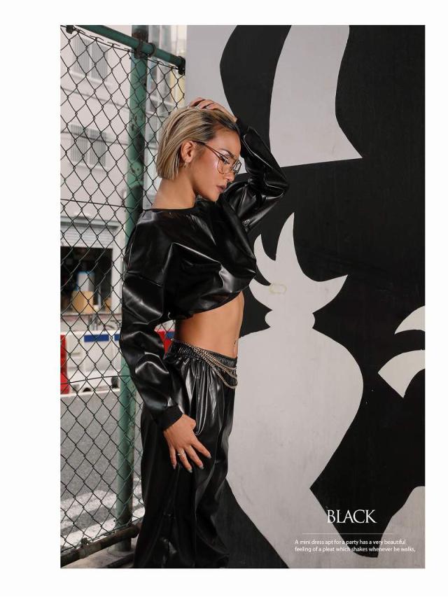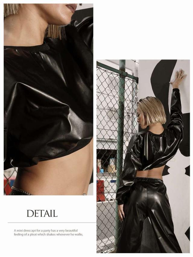 パーカー・トレーナー bombshell フェイクレザー ショート丈 トレ-ナ- パ-カ-