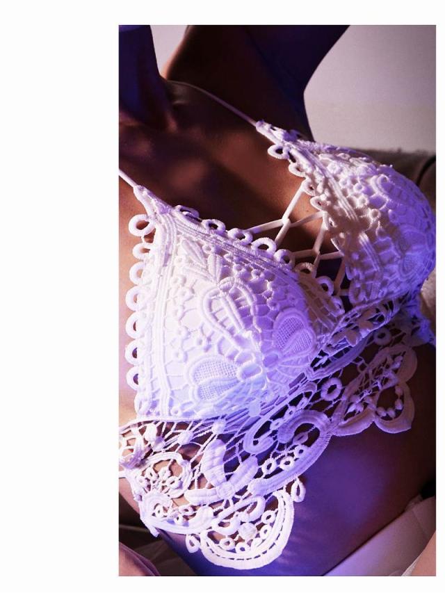 ☆大きめのかぎ編みレースから透ける肌に思わず目を奪われるエロ可愛いブラトップス。