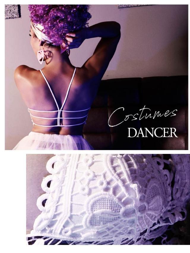 ☆レース刺繍がガーリーなショート丈トップスはバックデザインもセクシーでどこから見ても映えるダンス衣装。