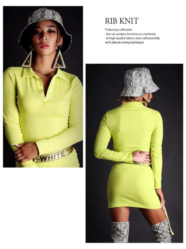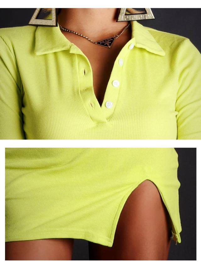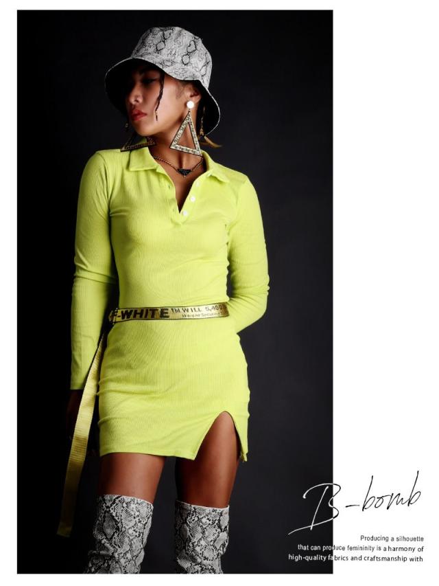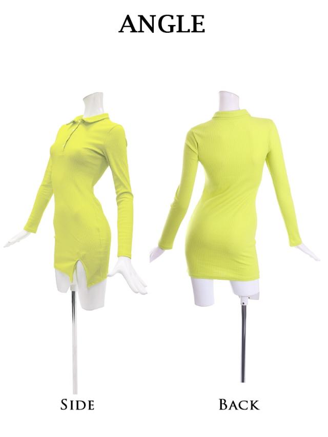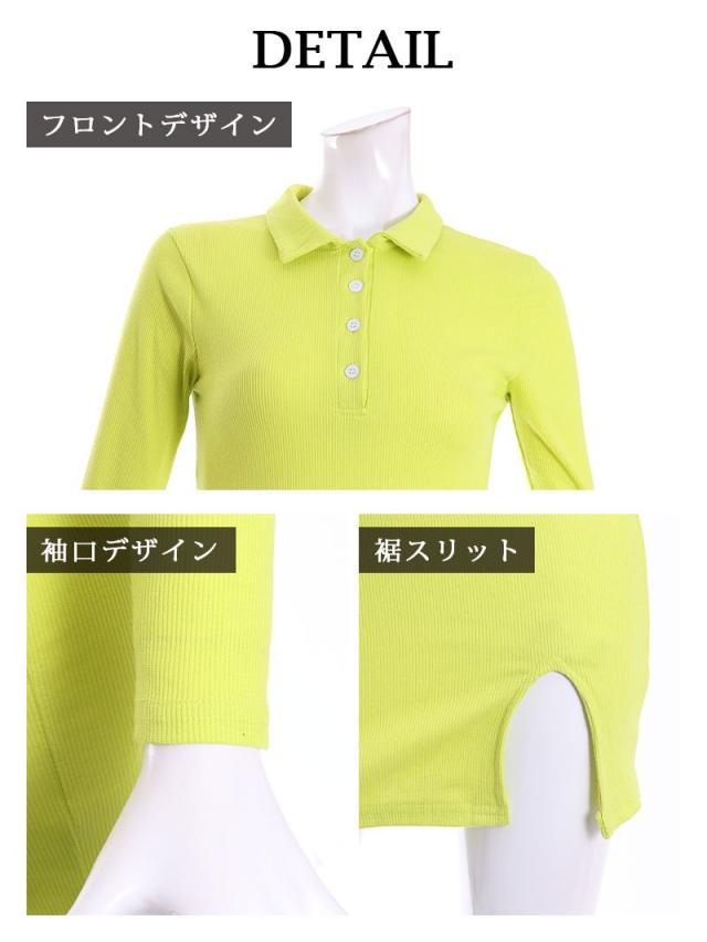 ☆ピッタリ感が超絶SEXYなサイドスリットカッティングのポロシャツ風リブニットワンピース!