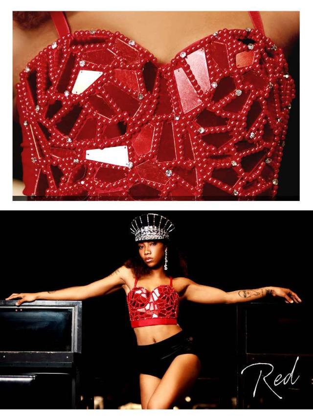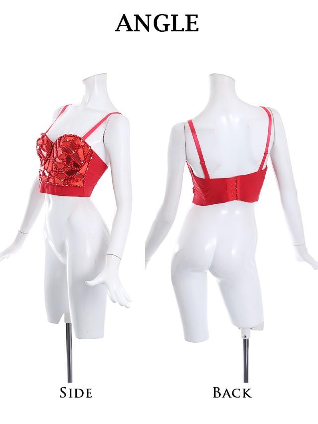 ☆フロントに施された超ド派手な赤のビジューが誰よりも目立つレディースビスチェ!