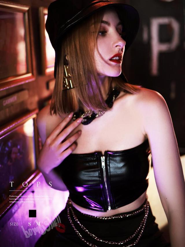 ブラトップ・チューブトップ・ベアトップ bombshell フェイクレザー ベアトップ ビスチェ フロントジッパ-