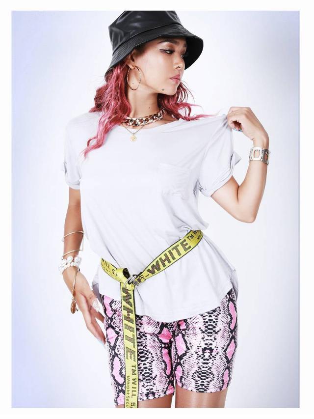 ☆シンプルなロンTやスウェットトレーナーにインナーとしてヘビ柄レギンスをレイヤードして海外風おしゃれダンサーコーデでキメて!