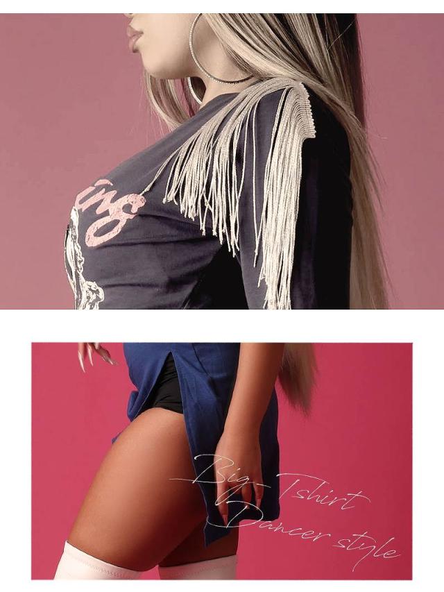 ☆揺れ動く肩のフリンジがオシャレなワンピースはダンサーさんの普段着はもちろんステージ映えするのでダンスコスチュームとしても♪