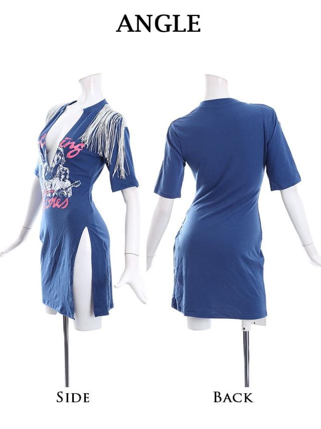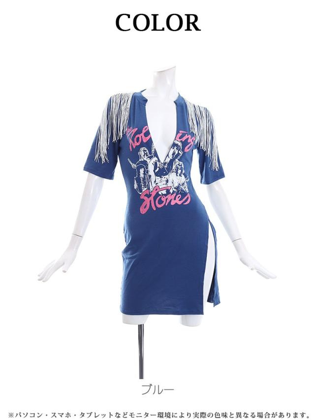 ワンピース Bbomb ワンピース フリンジ スリット ロックプリント